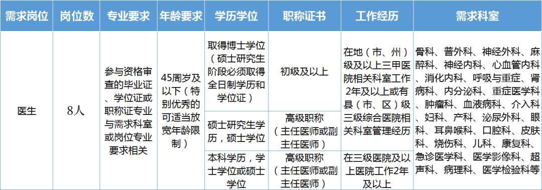 湖北省襄阳市第六人民医院是国家三级甲等综合医院。经过70多年的医疗积累,医院目前正进入快速发展的新阶段。我们期待您作为医师和主管医师的参与,共同打造地方医疗保健新水平!我们需要人才,但空缺职位很少。八个医生或学科带头人职位等待着您,涵盖许多重要领域,包括骨科、心血管医学、神经外科和肿瘤学。职位要求列表 职位要求列表 我们认识到优秀的人值得个人尊重,这就是为什么本次实施采取灵活的“一案一议”的方式,定制适合您的实施方案。我们提供有竞争力的完整保修。 1、机构设置保障:评审通过后,直接纳入机构设置或入职登记系统的管理。 2、综合缴费补贴:合同签订后,您将获得极具竞争力的缴费标准和生活补贴。保留和赡养费 3、薪资福利基准:全面参照医院同类在职员工标准,包括基本工资、绩效、五险一金等。 4、感人的家庭安排:我们会解决您的问题。配偶就业:按照“身份平等、双向选择”的原则,由单位人力资源部门协调安置。子女入学:教育局根据人力资源政策统筹安排,就近入学。申请流程清晰简洁,可直接进入职位。 1.报名期限:即日起至2025年12月31日(名额满为止) 2.报名方式:注册邮件方式:将材料发送至人力资源邮箱(2350782001@qq.com)。现场挂号:医院门诊楼四楼B区人力资源部。 3、后续流程:资格审查→专业面试→体检及考试→颁发就业证明 您可以通过二维码查看详细的招聘通知。咨询热线:0710-2552852(人力资源部) 监督热线:0710-2552851(纪检监察部) 医院地址:襄阳市香洲区港港路248号(东区)(来源:襄阳市第六人民医院)