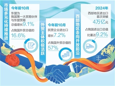 数据来源:海关总署 图:张丹峰推动贸易创新发展。推动外贸提质增效,加快商业强国建设。 ——摘自“十五五”规划建议 在广西壮族自治区自贸试验区崇左区东盟边境出口工程车海关仓库站,一辆辆新车驶向不远的越南。这些新车由广西万通国际物流有限公司提供。该公司作为一家从事贸易、报关、报检服务的出口型公司,涉足东盟贸易业务已有20多年,但近年来发展遇到障碍。 “每年进口货值”物流成本长期占到8000万元以上,占我们总运营成本的20%,这影响着我们的发展。谢巧吉说。2024年,到处寻找“落脚点”的万通公司,遇到了提供数字化服务的广西梁平供应链有限公司,两人相处融洽。他们什么时候“走到一起”?借助梁平公司人工智能通关平台,数据一键提取、一键上报,进入报关“二级时代”。“数字化报关,就像发短信一样简单”。谢巧吉表示,单据制作时间从传统的1-2小时缩短到15分钟,产品分拣时间从几个小时缩短到30秒左右,人工成本降低60%,因差错带来的额外成本降低90%。还有智能外贸综合服务平台,库存“前后台仓”,即时响应订单,解决订单问题。f 车辆出口周期长。谢巧吉说:“以前我们每天最多可以处理100辆汽车出口订单,但现在我们可以处理200多辆汽车。”说。在物流过程中,梁平公司收集分析万通公司的物流数据,通过自动化、智能化管理优化运输策略,减少闲置作业和低效运输。 “量身定制的解决方案非常让人放心,节省下来的资金可以用来拓展业务。”谢巧吉兴奋地说,这就像拥有了一位贴心周到的数字化物流“管家”,降低了成本,提高了效率。公司业务快速增长。去年进出口额突破2亿元。今年10月底,中国-东盟自贸区更新协议3.0版正式签署,这对于正在加紧拓展东盟市场的万通来说是个好消息。谢乔吉告诉r记者了解到,该公司业务正在拓展至老挝、MyAnmar、柬埔寨等国家,并计划在越南开设海外仓,以更贴近当地市场,提高服务响应速度。 “未来几年,我们还将提高数字化、智能化水平,推动进出口贸易再上新台阶。”谢巧吉说。本期统筹:齐家军《人民日报》(2025年11月14日第02页)