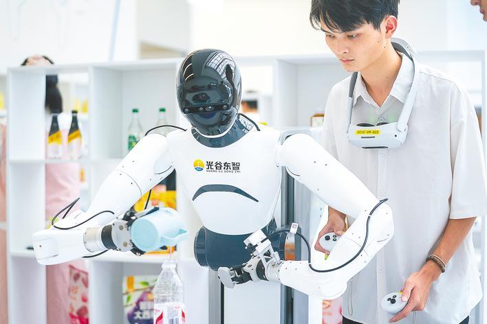 在湖北省仿人机器人创新中心,机器人正在接受行为学习训练。 (湖北日报记者魏如提供)“中共中央