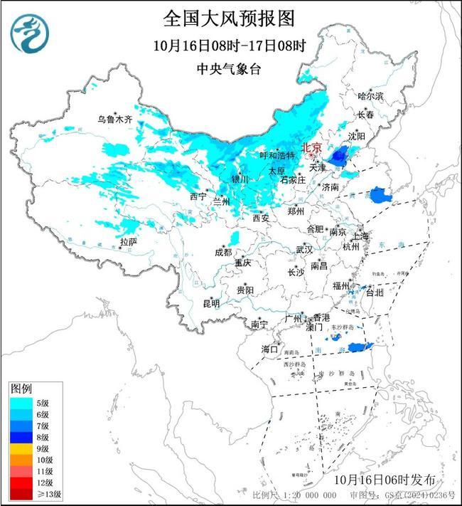 央视新闻:中央气象台从早上6点起继续发布大风蓝色预警。 10 月 16 日。预计持续时间为上午 8 点。 10 月 16 日至上午 8 点10 月 17 日。